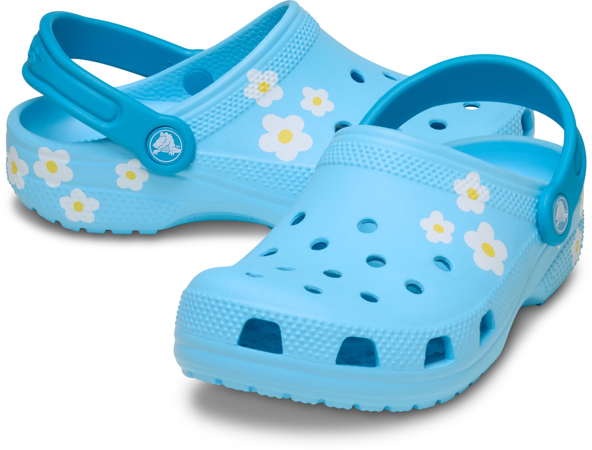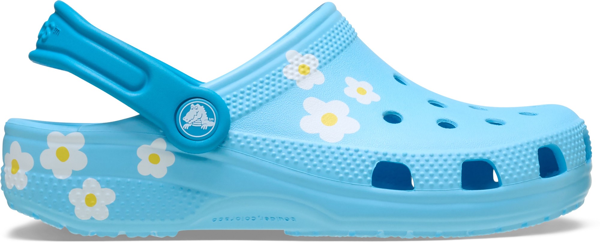 A charming daisy graphic provides extra style to this version of the iconic clog. The graphic helps kids show off their love of daisies, while the Croslite™ foam construction keeps them light and easy to wear. Grounded in comfort, spiked with personality.