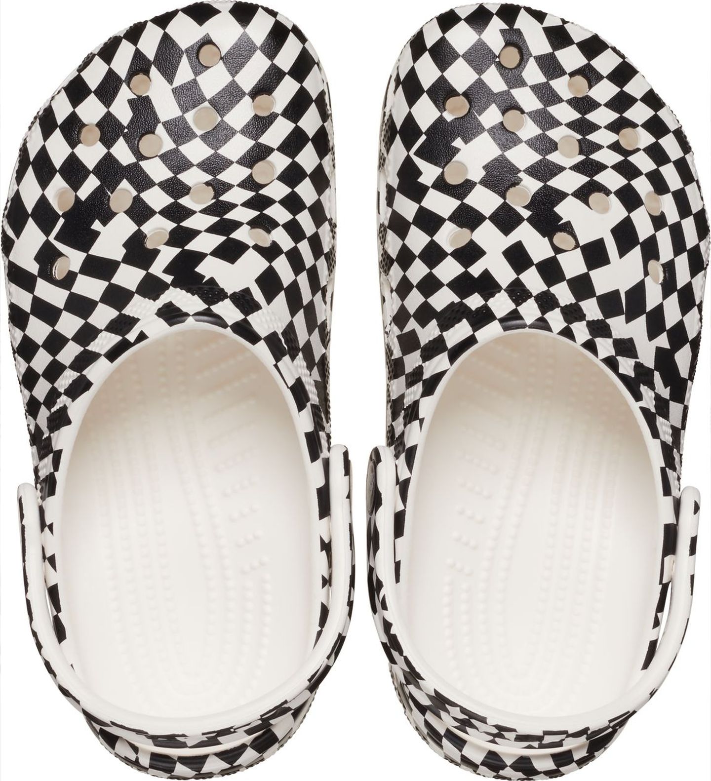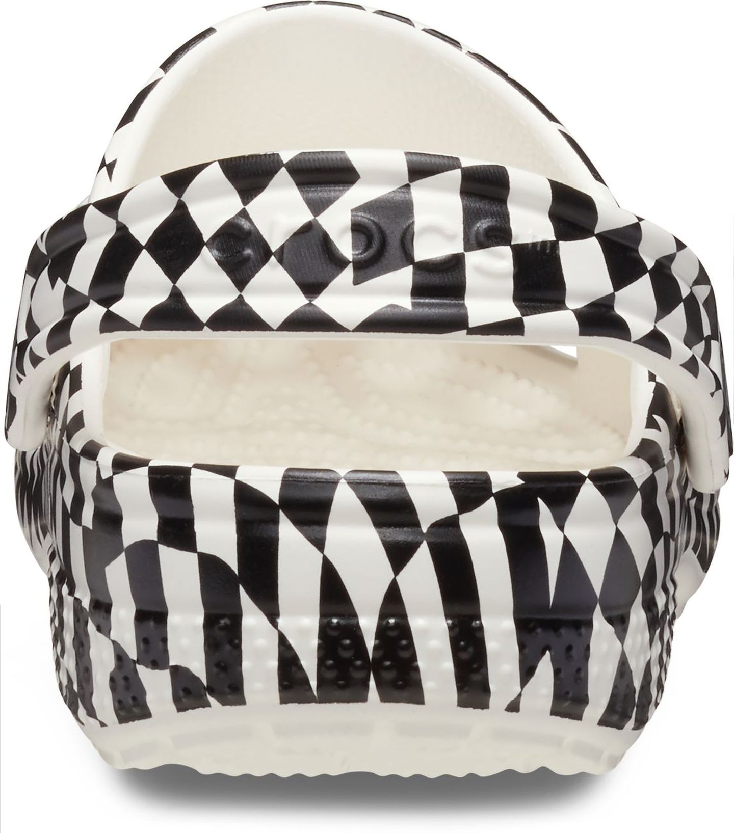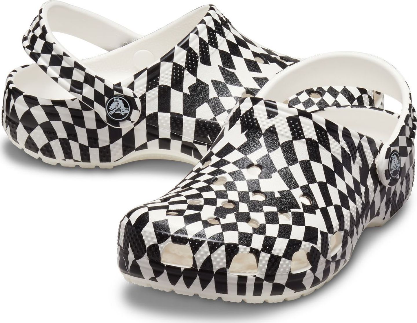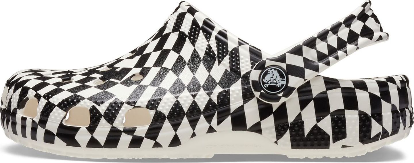 A warped black and white checked print provides extra style to this version of the iconic clog. The unique print helps you show off your creative spirit, and Croslite™ foam construction keeps them light and easy to wear. Also available for adults, so you can get matching pairs for a fun full family moment. Grounded in comfort, spiked with personality.