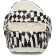• Warped black and white checked print;