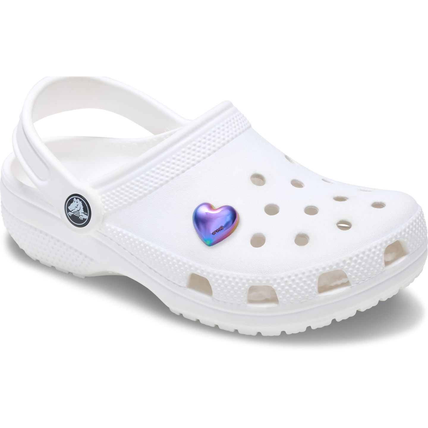 Pop some personality into your shoes with the Iridescent Bubble Heart Jibbitz™ charm. It's the perfect addition to your favorite clogs, slides, sandals, bags, and more.
